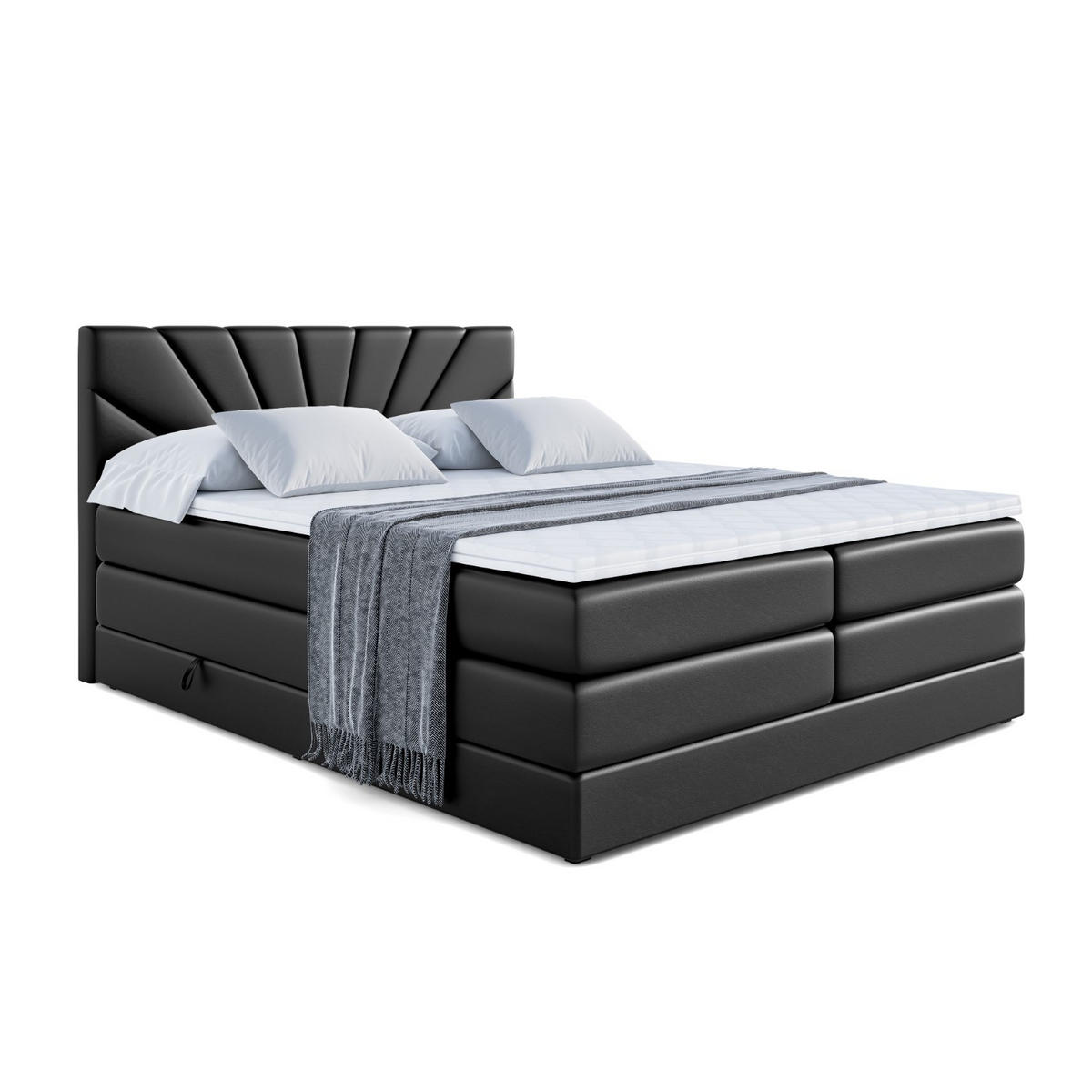 ALTDECOR BOXSPRINGBETT MILTIO KING - 160x200 - H3/H4 - Schwarz Hochglanz