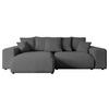Das moderne Polstersofa mit Schlaffunktion ist ein universelles Möbelstück. Das links oder rechts angeordnete Schlafsofa in L-Form bietet einen hohen Sitz-, Liege- und Schlafkomfort in jeder Situation. Dank ihrer gemütlichen Optik mit Sofakissen ist die Couch dazu hervorragend geeignet, um mit Familie oder Freunden Zeit zu verbringen Die rückenechte Polstercouch überzeugt durch ihre elegante Optik und rundet das Gesamtbild gekonnt ab. Die robuste Auszugsmechanik ist sehr einfach zu bedienen und verwandelt die Wohnzimmercouch im Handumdrehen in ein bequemes Gästebett. Das stabile Untergestell aus Möbelplatte und Holz garantiert die notwendige Standfestigkeit des Möbelstücks. Für mehr Ordnung ist die gemütliche Couch mit einem praktischen Bettkasten zur Aufbewahrung von Bettwäsche oder Decken ausgestattet. Komfort, der bleibt – Hochwertiger SchaumstoffIm Sitzbereich wird hochwertiger Polyurethanschaum verwendet – ein Material mit erhöhter Festigkeit und hoher Widerstandsfähigkeit gegen Verformung. Eine ideale Lösung für alle, die Wert auf Langlebigkeit und festen Sitzkomfort legen. Bitte beachte: