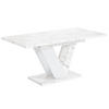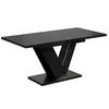 Der moderne Esszimmertisch überzeug mit stilvollem Design, einzigartiger Optik und robusten Materialien.Besonders auffallend ist das spektakuläre Untergestell, auf dem die robuste Tischplatte ruht. Das Möbelstück ist derInbegriff von modernem, industriellem Möbeldesign, das jedes Wohnzimmer oder Esszimmer sofort aufwertet undsich harmonisch in die Raumeinrichtung einfügt. Der Esstisch ist sehr praktisch und wird schnell zum Zentrum des Geschehens und ist perfekt dazu geeignet, um mit Familie oder Freunden gemeinsam Zeit zu verbringen. Diestrapazierfähige, 3,2 cm starke Tischplatte ist laminiert und somit beständig gegen hohe Temperaturen, Alkohol und Feuchtigkeit. Die laminierte Oberfläche kann problemlos mit einem weichen Mikrofasertuch gereinigt werden.p>Stärkere Verschmutzungen lassen sich mit feuchtem Tuch und etwas Wasser mit einem milden Spülmittel odereinem handelsüblichen Möbel beseitigen.Die ausziehbare Tischplatte, die auf hochwertigen Synchronführungsschienen aufgelegt ist, ermöglicht die Abstellfläche von 120 cm auf 160 cm zu erweitern! Die äußerst robuste Mechanik ist sehr einfach zu bedienen,sodass sich der Tisch im Handumdrehen in ein familiäres Möbelstück verwandeln lässt, um das sich die ganze Familie versammelt, um gemeinsam zu essen, sich zu unterhalten oder einfach nur Spaß zu haben.Die Möbel werden in Paketen zur Selbstmontage geliefert. Lieferung „frei Bordsteinkante“: Der Fahrer ist nicht verpflichtet, die Möbel in die Wohnung zu tragen.