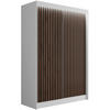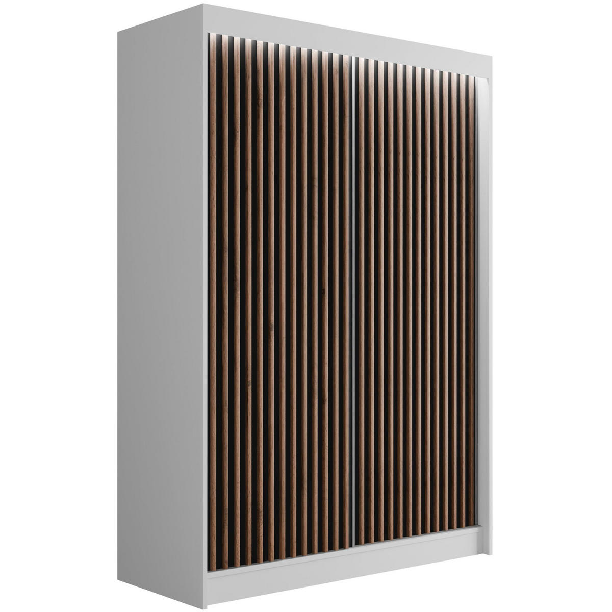 ALTDECOR KLEIDERSCHRANK mit LED, Lamel-Schiebetüren VILANv2 - 120 cm Weiß + Lamelle Eiche Wotan
