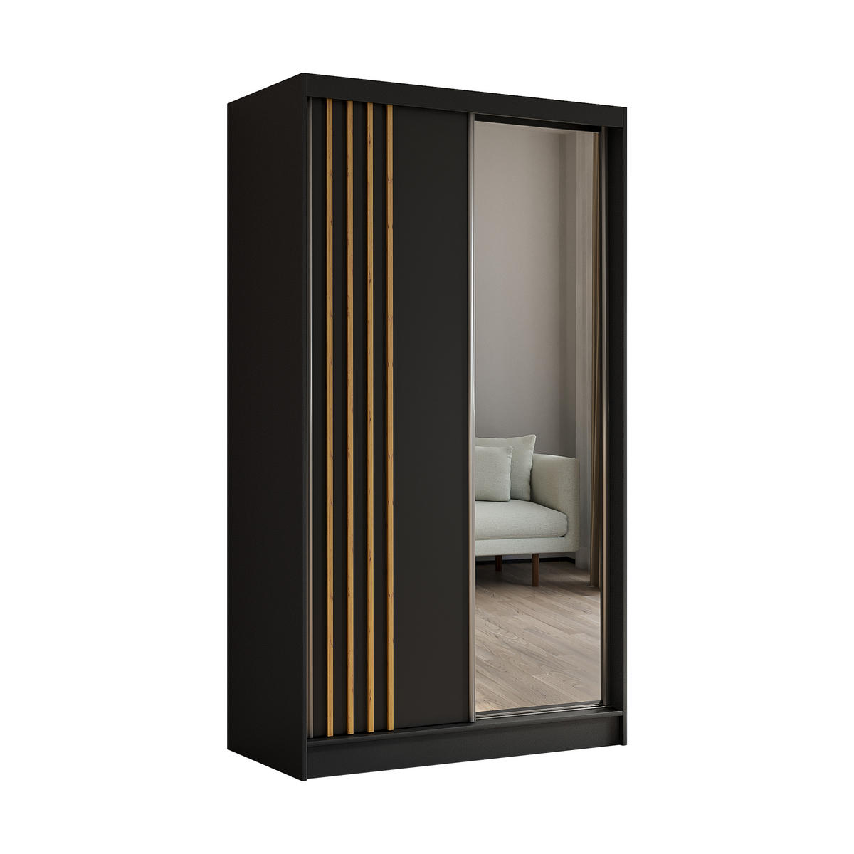 ALTDECOR KLEIDERSCHRANK mit Spiegel-Schiebetüren und Aluminium-Leisten, LED-Beleuchtung - NALLA - 120 cm Schwarz+Schwarz+Artisan