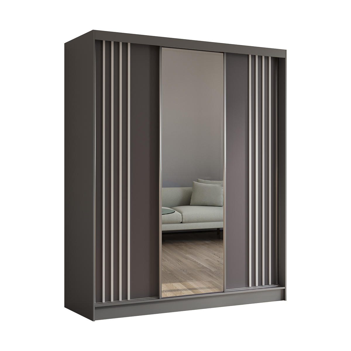 ALTDECOR KLEIDERSCHRANK mit Spiegel-Schiebetüren und Aluminium-Leisten, LED-Beleuchtung - NALLA - 180 cm Grau+Grau+Weiß