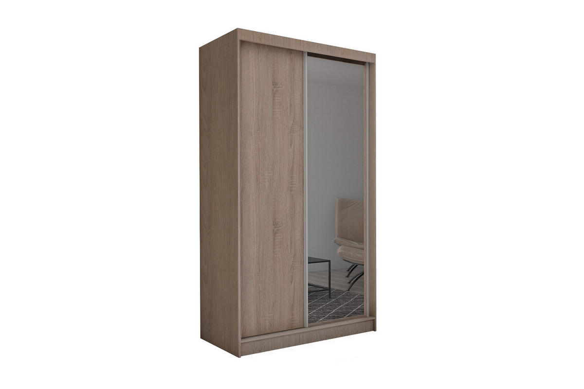 ALTDECOR KLEIDERSCHRANK mit Spiegel-Schiebetüren und Aluminium-Leisten, LED-Beleuchtung - PARTI - 120 cm Braun