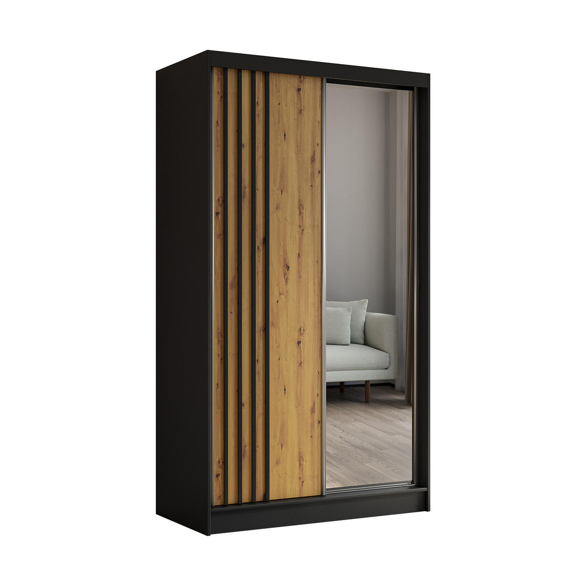 ALTDECOR KLEIDERSCHRANK mit Spiegel-Schiebetüren und Aluminium-Leisten - NALLA - 120 cm Schwarz+Artisan+Schwarz