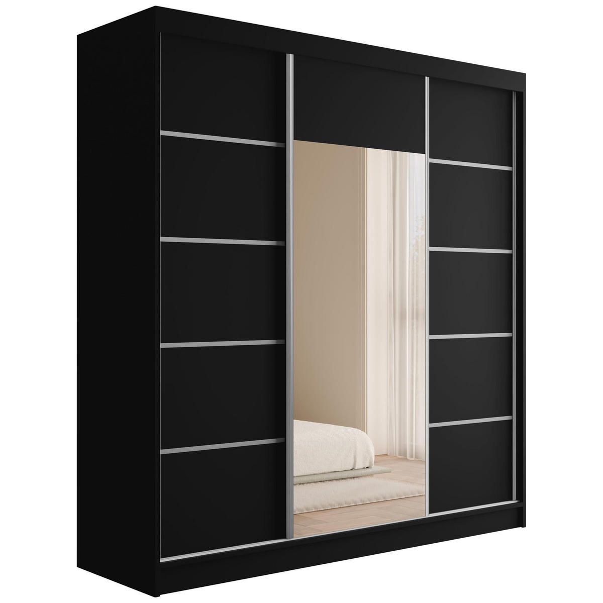 KLEIDERSCHRANK mit Spiegel V2-LINEA 215x200 cm Schwarz - Schwarz, Holzwerkstoff (200/215/61cm) - ALTDECOR