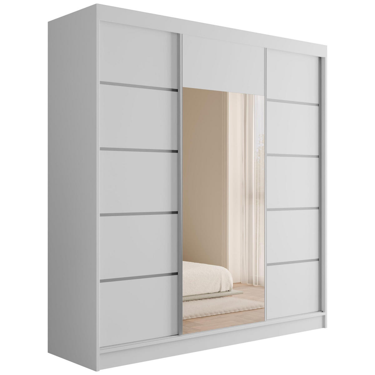 KLEIDERSCHRANK mit Spiegel V2-LINEA 215x200 cm Weiß - Weiß, Holzwerkstoff (200/215/61cm) - ALTDECOR