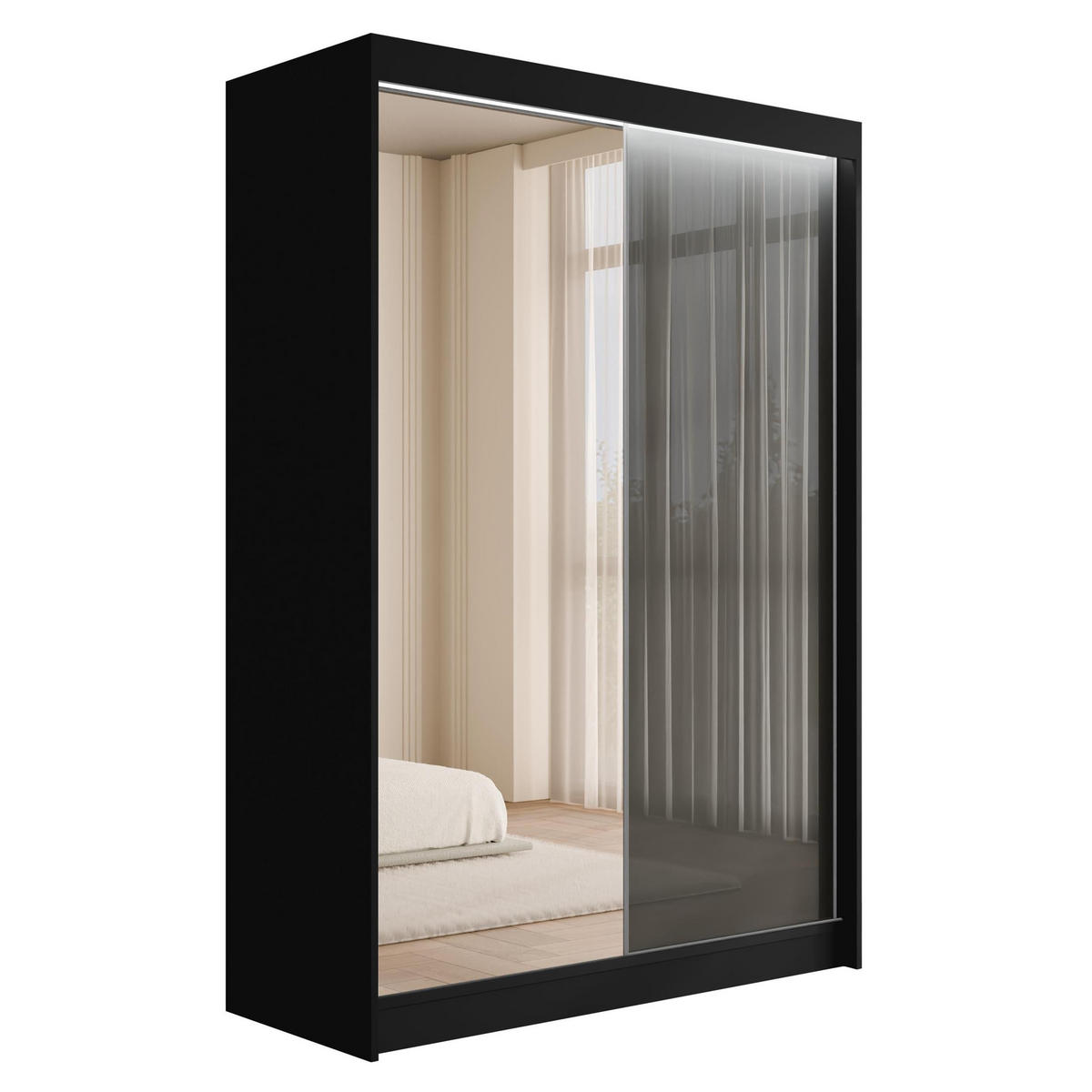 KLEIDERSCHRANK VESLI mit LED - 150 cm - Schwarz|Grau - Schwarz/Grau, Holzwerkstoff (150/215/61cm) - ALTDECOR