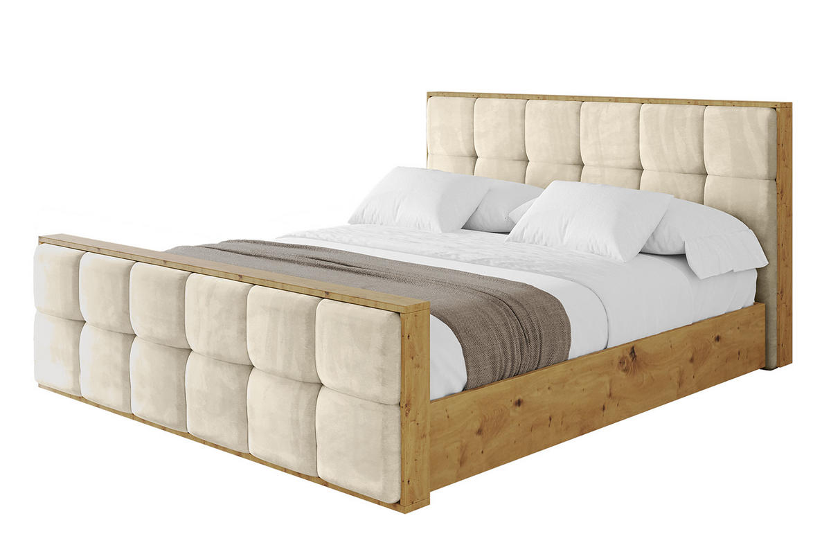 Polsterbett mit Stauraum – moderner Stil und außergewöhnlicher Komfort Suchen Sie ein Bett, das nicht nur durch sein ansprechendes Design überzeugt, sondern auch maximalen Komfort bietet? Unsere Polsterbetten sind die perfekte Lösung für alle, die Funktionalität, Eleganz und Bequemlichkeit zu schätzen wissen. Die modernen Polsterstoffe, die in einer breiten Farbpalette erhältlich sind - von zarten Schattierungen bis hin zu intensiven Tönen - ermöglichen eine perfekte Anpassung an jede Einrichtung. Das hohe, gepolsterte Kopfteil ist nicht nur ein dekoratives Element – es dient auch als bequeme Rückenlehne für entspannte Abende mit einem Buch oder Ihrer Lieblingsserie. Ein praktisches Highlight unserer Doppelbetten ist der geräumige Stauraum, der sich von vorne öffnen lässt. Dank des stabilen Bodens aus weiße laminierte Platte 16 mm im Inneren ist die Aufbewahrung sicher und bequem – ideal für Bettwäsche, saisonale Kleidung oder andere Accessoires. Unsere Betten mit Lattenrost sind in verschiedenen Größen erhältlich, sodass sie sich sowohl für kleine Schlafzimmer als auch für großzügige Räume eignen.