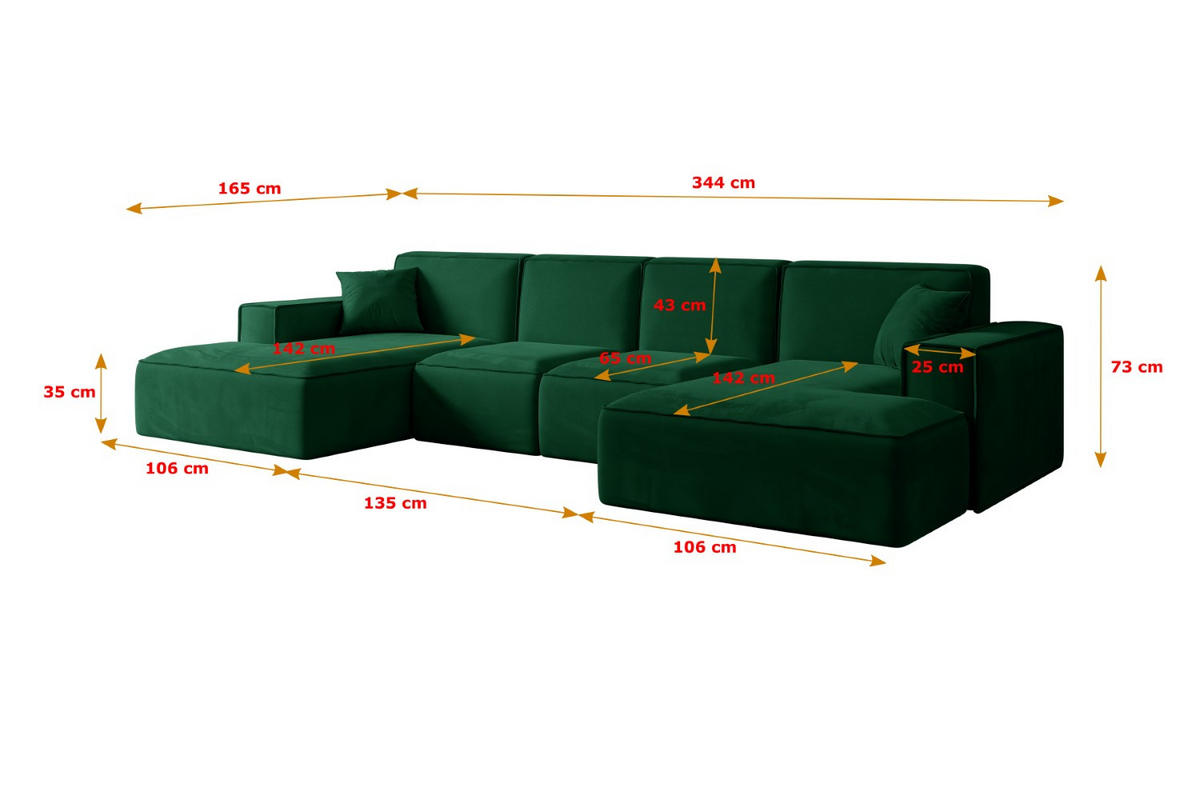 - Vielseitige Sofa: Die Ecksofa hat Komfort und Stil. Praktische Bequeme Funktionsecke für Ihr Zuhause. Raumsparende Couch L-Form: Dank der L-Form passt die Eckcouch in jede Ecke. - Modernes Ecksofa mit Hochwertige Polsterung für maximalen Komfort. Perfekt für stilvolle Wohnzimmer und bequeme Sitzfläche für pure Entspannung - Das solide Couchgestell aus Möbelplatte und Holz ruht auf stabilen Stellfüßen aus hartem Kunststoff. Die langlebige Konstruktion garantiert eine lange Nutzungsdauer - Die Corner Sofa Sitzfläche ist mit Wellenfederung, hochelastischem HR35-Schaum, mittelharten T30-Schaum ausgepolstert. Die Sofakissen sind am Sofa befestigt und nicht abnehmbar - KRONOS: Scheuerfester (50.000 Martindale-Zyklen), flauschiger Möbelstoff mit weicher Plüschoberfläche, lichtecht (5), reibecht (4-5), pillingarm (4). Gewicht 275 g/m2 ±5%. Das moderne Polstersofa ist ein universelles Möbelstück. Das Schlafsofa in U-Form bietet einen hohen Sitz-, Liege- und Schlafkomfort in jeder Situation. Dank ihrer gemütlichen Optik mit Sofakissen ist die Couch dazu hervorragend geeignet, um mit Familie oder Freunden Zeit zu verbringenDie eleganten Stellfüße verleihen der rückenechten Polstercouch eine gewisse, optische Leichtigkeit und runden das Gesamtbild gekonnt ab. Das stabile Untergestell aus Möbelplatte und Holz garantiert die notwendige Standfestigkeit des Möbelstücks.Dieses Ecksofa vereint zeitloses Design mit höchstem Sitzkomfort. Die hochwertige Polsterung sorgt für eine angenehme Unterstützung und lädt zum Entspannen ein. Dank der robusten Konstruktion und sorgfältig ausgewählten Materialien überzeugt das Sofa durch Langlebigkeit und Stabilität. Die harmonische Farbauswahl und das elegante Design fügen sich perfekt in verschiedene Wohnstile ein und setzen stilvolle Akzente im Wohnbereich. Ideal für gemütliche Abende mit Familie und Freunden – ein echter Blickfang für jedes Wohnzimmer. Komfort, der bleibt – Hochwertiger Schaumstoff Im Sitzbereich wird hochwertiger Polyurethanschaum verwendet – ein Material mit erhöhter Festigkeit und hoher Widerstandsfähigkeit gegen Verformung. Eine ideale Lösung für alle, die Wert auf Langlebigkeit und festen Sitzkomfort legen.Die Möbel werden in Paketen zur Selbstmontage geliefert.