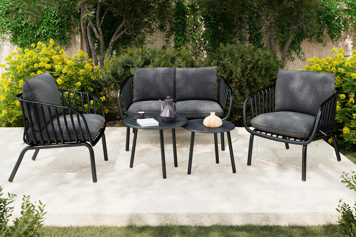Gartenset (5-teilig) aus Metall & Kunststoff: cozy Outdoor-Lounge zum Relaxen