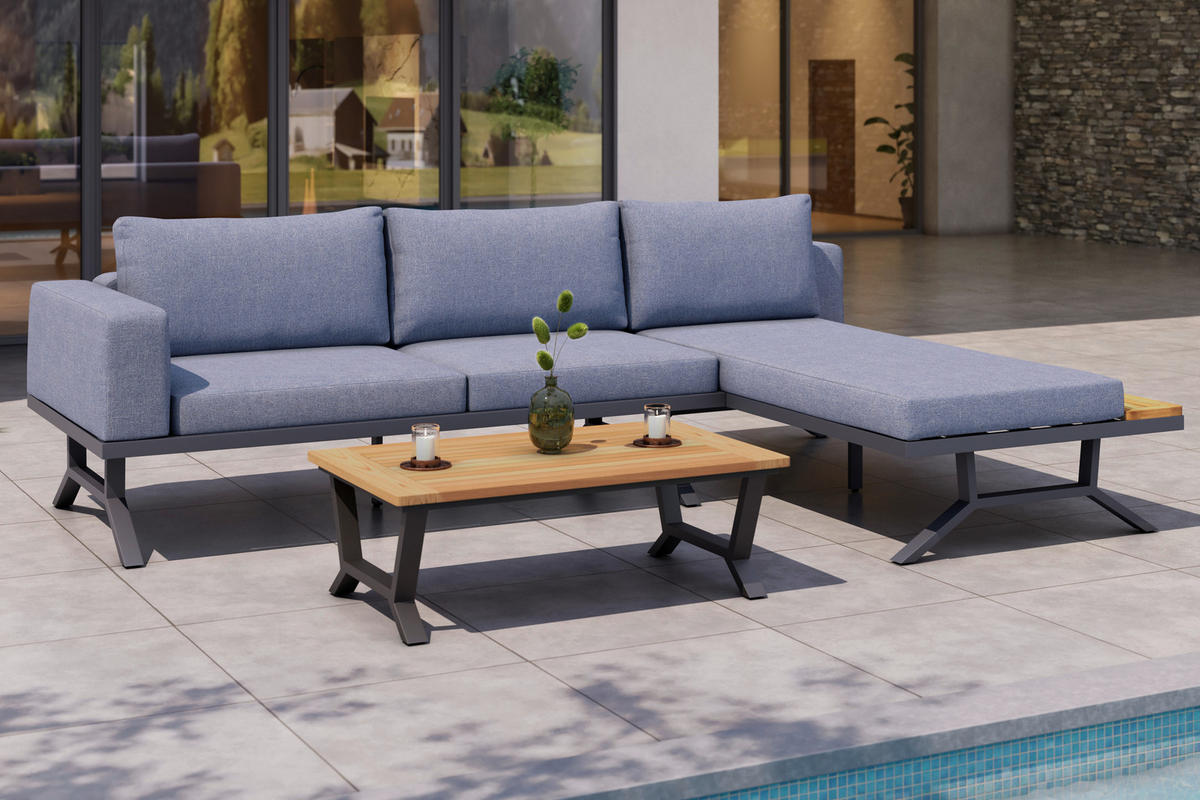Loungegarnitur aus Teakholz und Aluminium: Alle guten Dinge sind drei!