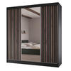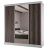 Der Schiebetürenschrank LAMI verbindet modernes Design mit hoher Funktionalität und bringt stilvolle Eleganz in jedes Schlafzimmer. Mit drei leichtgängigen Schiebetüren, von denen eine als großzügiger Spiegel gestaltet ist, lässt er Räume größer und heller wirken. Die dekorativen Lamellen setzen zudem ein raffiniertes, wohnliches Highlight und machen den Schrank zu einem echten Blickfang.