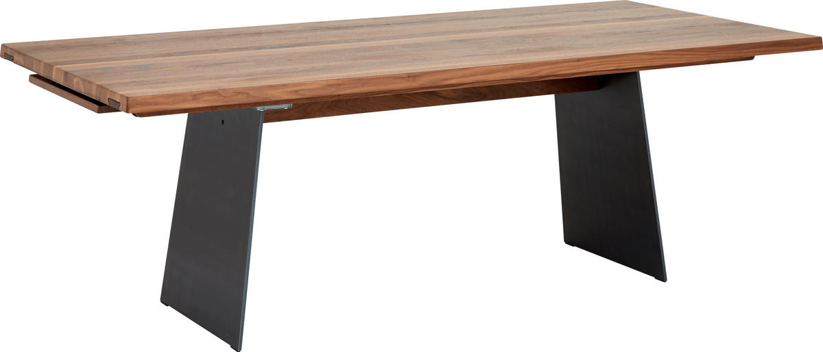 Ein Esstisch, der die ganze Kraft der Natur widerspiegelt. Genießen Sie auch die deftigsten Speisen auf dem aus Astnuss geformten Tisch von ANREI. Sein robustes Holz verleiht jedem Anlass eine stabile Grundlage. Ob Frühstück oder Geburtstagsparty: Halt ist auf diesem stabilen Tisch garantiert. Der natürliche Charme verleiht Ihrem Esszimmer einen rustikalen Akzent. Ergänzt durch das zeitlose Design der massiven Metallbeine wird das tägliche Mahl zum absoluten Highlight. Ein Prachtstück, sowohl für den Single- als auch den Familienhaushalt: Die mitgelieferte Ansteckplatte vergrößert Ihre Tischfläche auf eine Länge von ca. 275 cm. Selbst für den spontansten Besuch sind Sie allzeit gewappnet. Es gibt ausreichend Platz für jeden hungrigen Besucher!