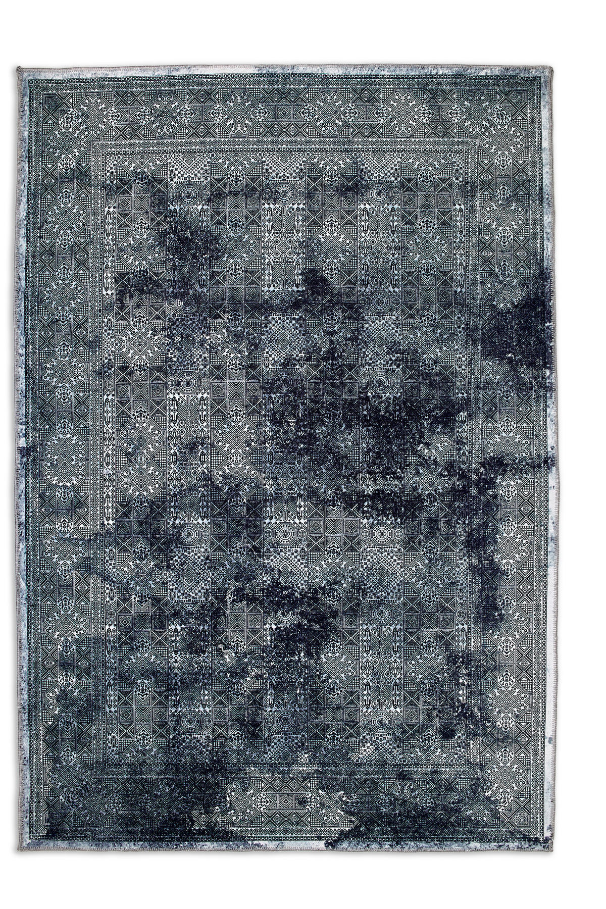 Dieser anthrazitfarbene und schwarze ASTRA Flachwebeteppich (