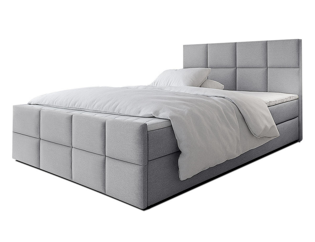AX Living BOXBETT ALEYNA 140x200 cm mit Bettkasten und Matratze - Grau + TOPPER