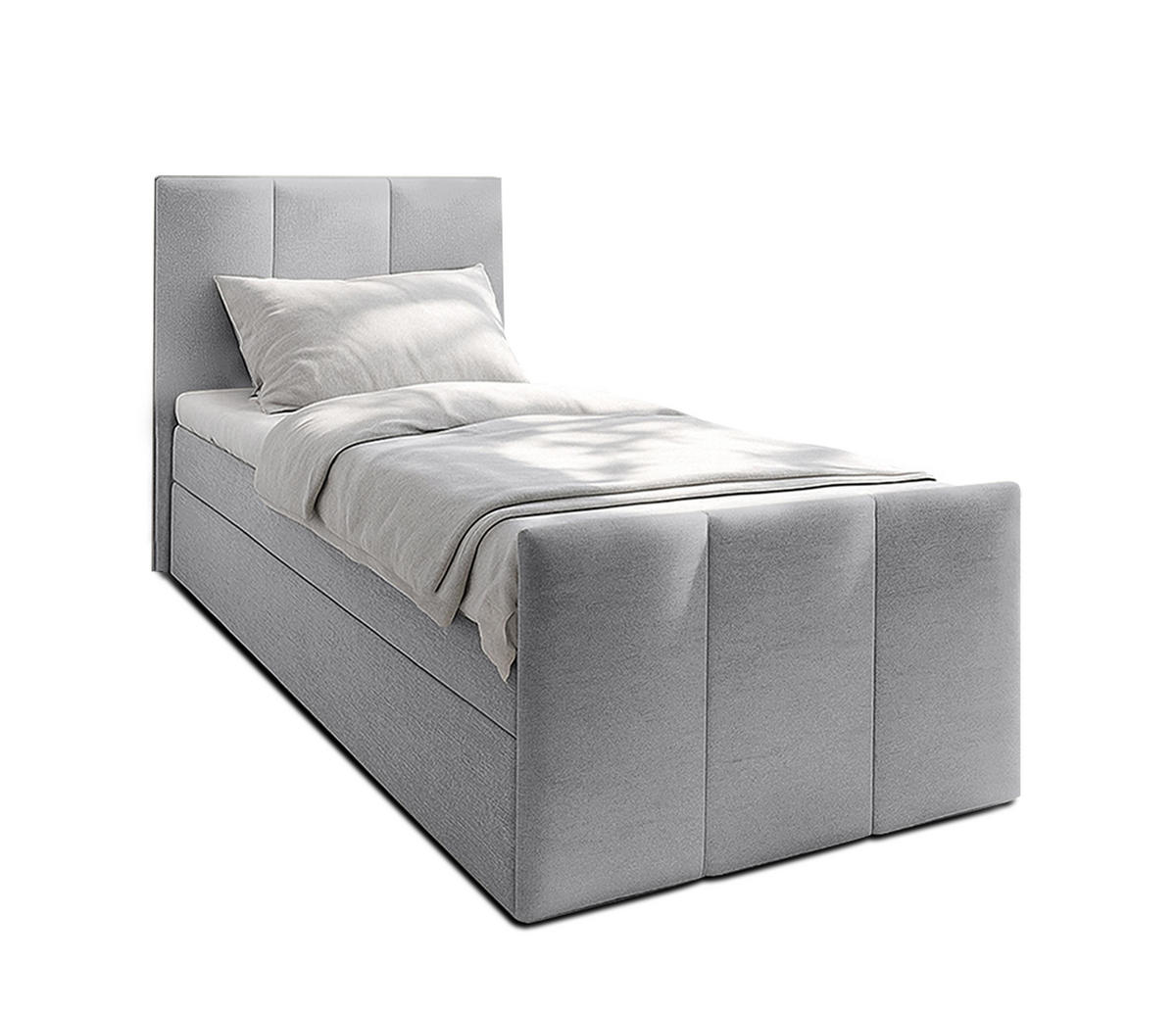 Die geräumigen Bettkästen des 90x200 Boxspringbett ermöglichen eine ordentliche Aufbewahrung von Decken, Kissen oder Bettwäsche. Die Kombination aus Bonellfederkern und Komfortschaum macht dieses 90x200 Bett besonders bequem. Das gepolsterte Kopfteil lädt zu gemütlichen Lesestunden oder entspanntem Fernsehen ein.