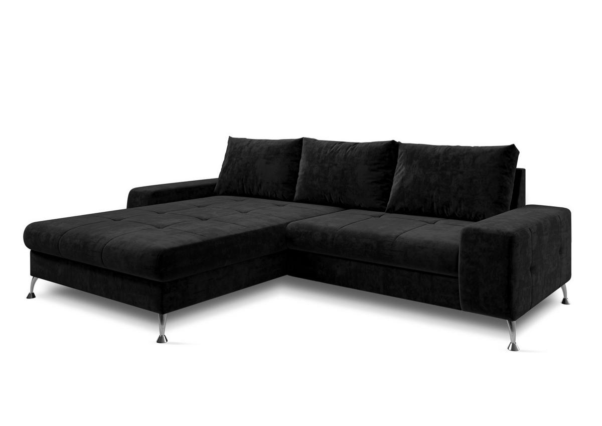 AX Living ECKSOFA L Form Artemia Schwarz Samt 275/192/81 cm – modernes Sofa fürs Wohnzimmer L