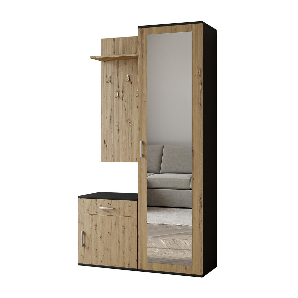 Diese Flurgarderobe schwarz Artisan ist die perfekte Wahl für ein modernes und stilvolles Zuhause.