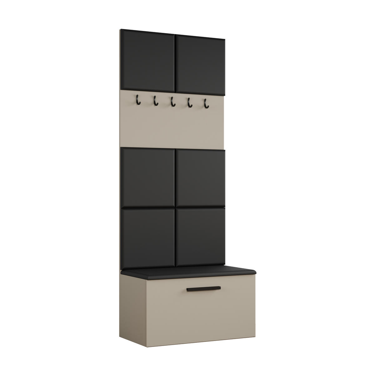 Die Garderobe mit Sitzbank Rosanno I eignet sich ideal für Familien und Haushalte, die ihren Eingangsbereich effizient nutzen möchten. Das gepolsterte Sitzkissen erleichtert das Anziehen der Schuhe, während der integrierte Schuhschrank für Ordnung sorgt. Die fünf Garderoben Haken bieten ausreichend Platz für Jacken, Taschen und Schals. Die dekorativen Paneele und das moderne Design fügen sich nahtlos in verschiedene Einrichtungsstile ein und verleihen Ihrem Flur eine elegante Note.