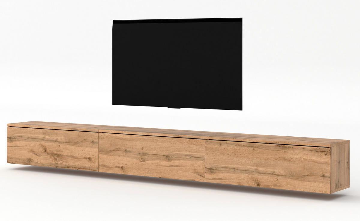 Hinweis: Das Produkt besteht aus drei Schränken, jeweils 100 cm lang. Keine Montagedübel oder LED-Beleuchtung enthalten. Bitte wählen Sie die passenden Dübel entsprechend der Wandbeschaffenheit.Das TV Board Eiche Wotan Loriano ist mehr als nur ein TV Möbel – es ist ein Design-Statement für alle, die Wert auf Stil, Funktionalität und Qualität legen.