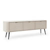 Diese Kommode für TV fügt sich durch ihre elegante Gestaltung harmonisch in moderne Wohnräume ein. Dank der hochwertigen Materialien und der stabilen Verarbeitung ist dieses Möbelstück langlebig und robust. Perfekt als TV Kommode, um sowohl Funktionalität als auch Ästhetik in Ihrem Wohnzimmer zu vereinen.