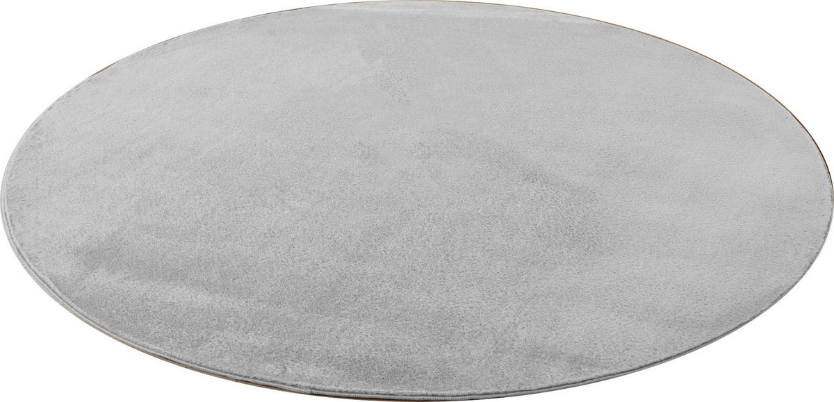 Dieser ca. 80 cm (Durchmesser) große Webteppich (gewebt und rund) in Silberfarben richtet den Fokus auf Gemütlichkeit.