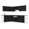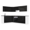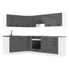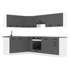 Farben: Fronten: Schwarz Hochglanz, Silber Hochglanz, Rot Hochglanz, Sonoma-Eiche, Wotan-Eiche, Glamour Wood, Königliches Ebenholz, Natürliche Kastanie, Weiß matt, Silber matt | Blenden: Weiß matt | Füße: Schwarz | Griffe: Dunkelschwarz | Arbeitsplatten: Silber-grau