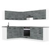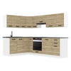 Material: Korpus: Spanplatte, 16 mm, Melaminharzbeschichtung | Griffe, Füße: Kunststoff | Arbeitsplatten: Spanplatte, 28 mm, HPL Schichtstoff Laminat furniert