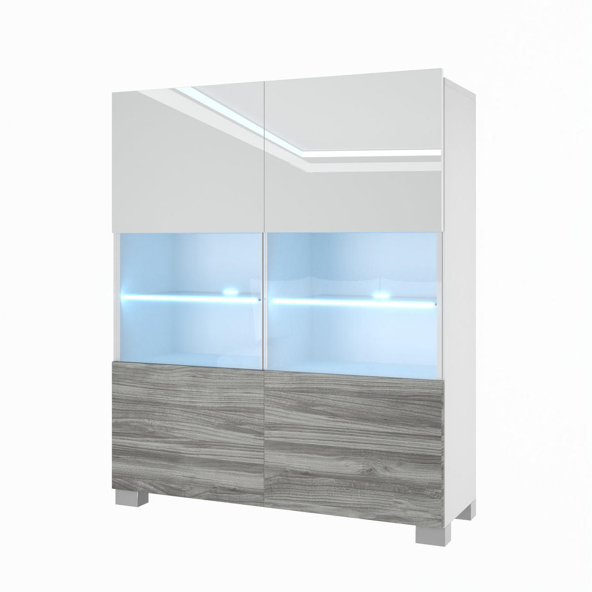BELINIB BELINI GROUPBELINI Kommode Sideboard Wohnzimmer Schlafzimmer Schrank Hochschrank mit LED-Leuchten Super-Soft-Touch-System zum sanften Schließen Aller Scharniere (Weiß/Glamour Holz)Das System PRO+ basiert auf der dauerhaften Beschichtung und Härtung aller sichtbaren Seiten/Branchen/Möbelelemente mit ABS-Kantenumleimung mit der höchsten Beständigkeit gegen mechanische Beschädigungen auf dem Markt.Super-Soft-Touch-System zum sanften Schließen aller Scharniere in allen Fronten des Möbelsets. Das System ist im Set inklusive.LED-Beleuchtung Lumia Klima Mehrfarbige Beleuchtung, die mit einer RGB-Fernbedienung gesteuert wird, schafft eine einzigartige Atmosphäre im Wohnzimmer. Im Lieferumfang.Keine äußeren Griffe. Die Möbel haben keine äußeren Griffe. Die Rolle der Griffe spielen innovative Fronten, die 15 mm unter und über das Niveau der Körper hinausragen. Absolute Minimierung von Verschmutzungen und Beschädigungen an der Oberfläche der Fronten.Modulares Design, das es Ihnen ermöglicht, eine beliebige Anzahl von Kommoden zusammenzustellen.