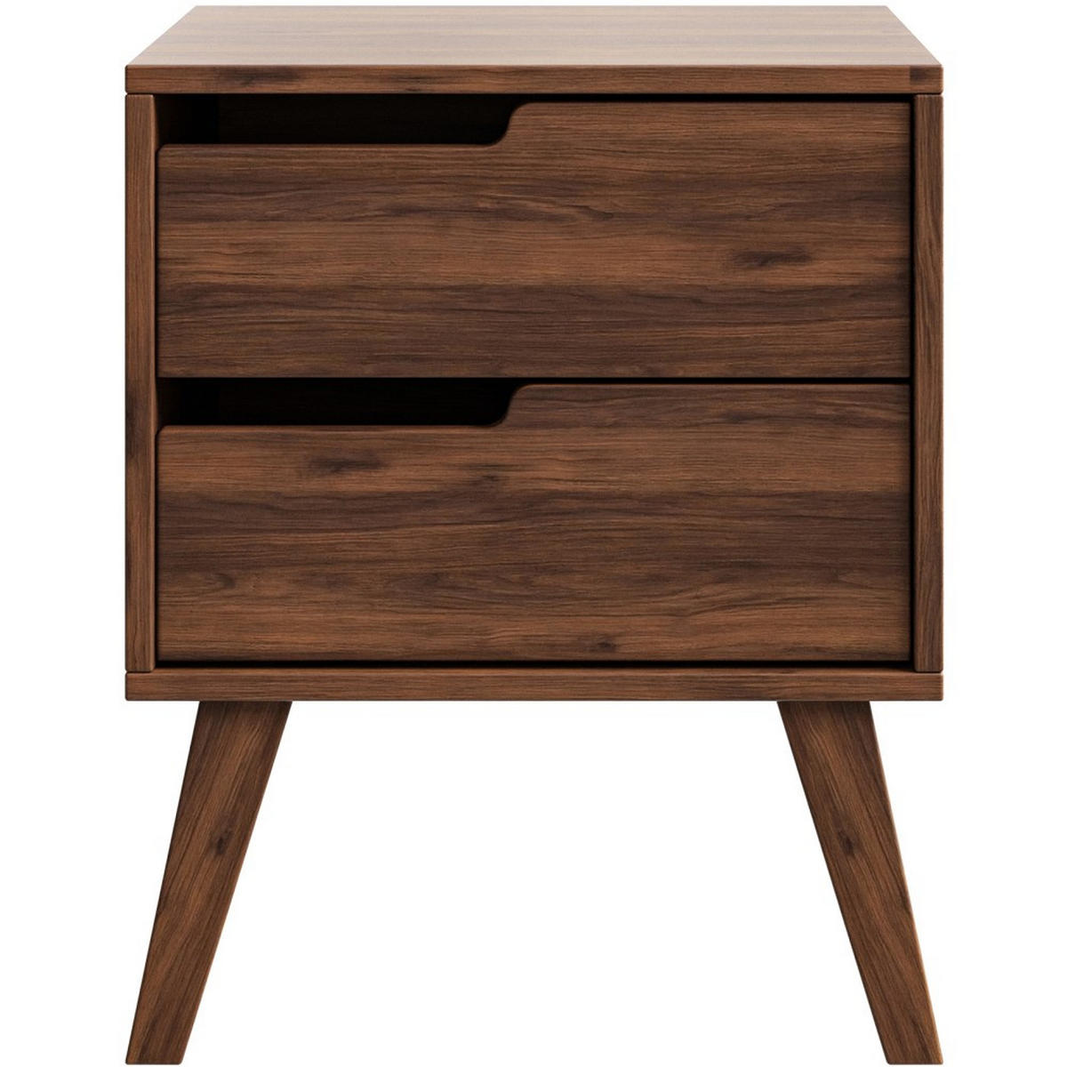 Der Nachttisch NOREL mit 2 Schubladen vereint modernes skandinavisches Design, Funktionalität und hochwertige Verarbeitung in einem eleganten Möbelstück. Mit seiner klaren Formensprache und den natürlichen Farbtönen – wahlweise in Nussbaum oder Cashmere – bringt er stilvolle Harmonie in jedes Schlafzimmer. Dank seiner kompakten Maße eignet er sich perfekt für kleinere Räume oder als Beistelltisch im Wohnbereich.