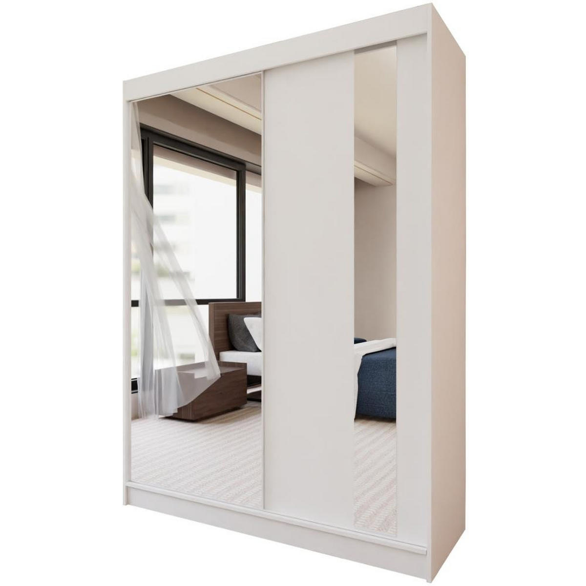 Dieser hochwertige Schrank besteht aus 16 mm starker laminierter Platte, was ihm Langlebigkeit und Stabilität verleiht. Die Türfronten sind mit einem großen Spiegel versehen, der den Raum optisch vergrößert und Ihnen hilft, Ihr Outfit perfekt abzustimmen. Dieser Spiegel sorgt für eine moderne und elegante Optik, die Ihrem Raum zusätzliche Tiefe verleiht.