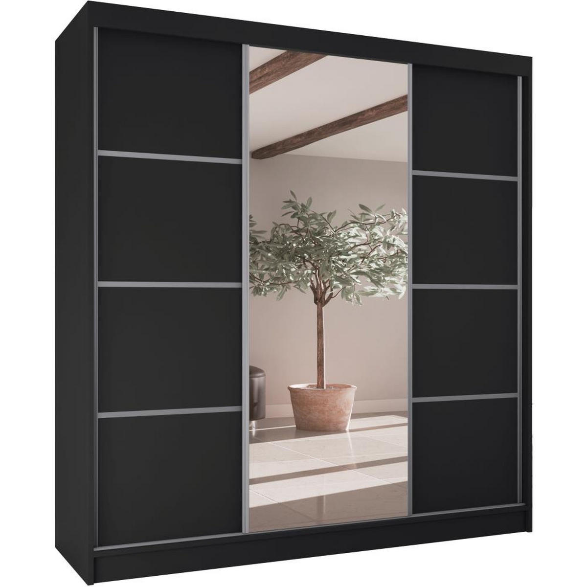SCHWEBETÜRENSCHRANK Vilo II 200/61/215 schwarz+silber - Silberfarben/Schwarz, Holzwerkstoff (200/215/61cm) - BeautysofaBeautysofa