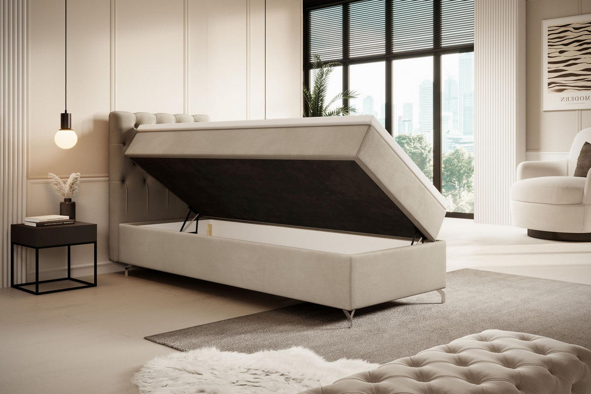 BOXBETT CHESTER mit Matratze H3, Bonell und Topper 90x200 Monolith 02 Links - Beige, Textil (90/200cm) - BedanteBedante