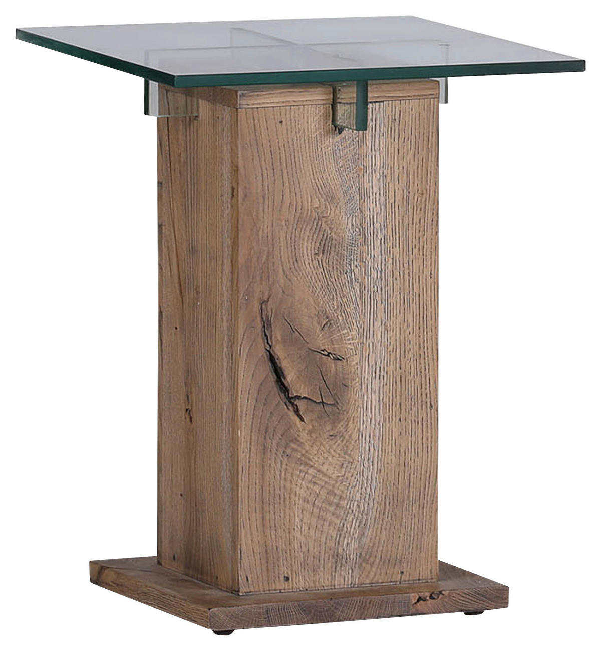Design-Beistelltisch aus Holz und Glas: ausdrucksstarker Materialmix