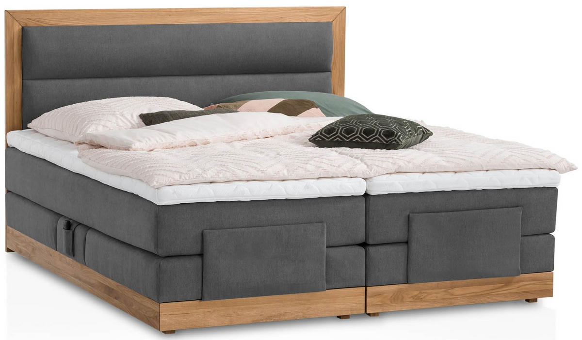 BOXSPRINGBETT ELEKTRISCH VERSTELLBAR MODELA 160x200 Anthrazit H2 und H3 Motorbett in Eiche mit 7-Zonen Taschenfederkern Matratze inkl. Visco Topper - Anthrazit, Textil (160/200cm) - BelanotiBelanoti