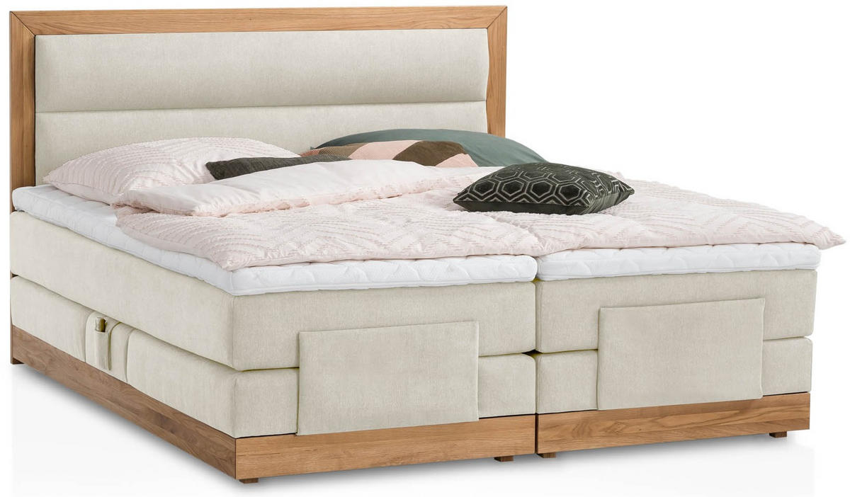 TECHNISCHE DATEN: Abmessung: 160x200 cm (BxL) - Härtegrad: H2 & H3 ✔ Jede Matratze hat eine Seite H2 und die andere H3. Daher kann sich jede Person, unabhängig von der anderen Seite, Ihre gewünschte Härte wählen. Außenholz: 100 % Eiche - Bonellfederkern + Taschenfederkernmatratze 7-Zonen (ca. 1000 Federn pro Liegefläche) + 2 x einzelne Visco Topper mit Memoryeffekt + Motoren auf beiden Seiten mit einer unglaublichen Stärke von 2 x 10.000 Nm + 2 x kabellose Handschalter für den maximalen Komfort - Hebegrad Obere 54° & des Fußteils bis zu 40°. Material: 100 % Premium gewebter Mikrofaserstoff.