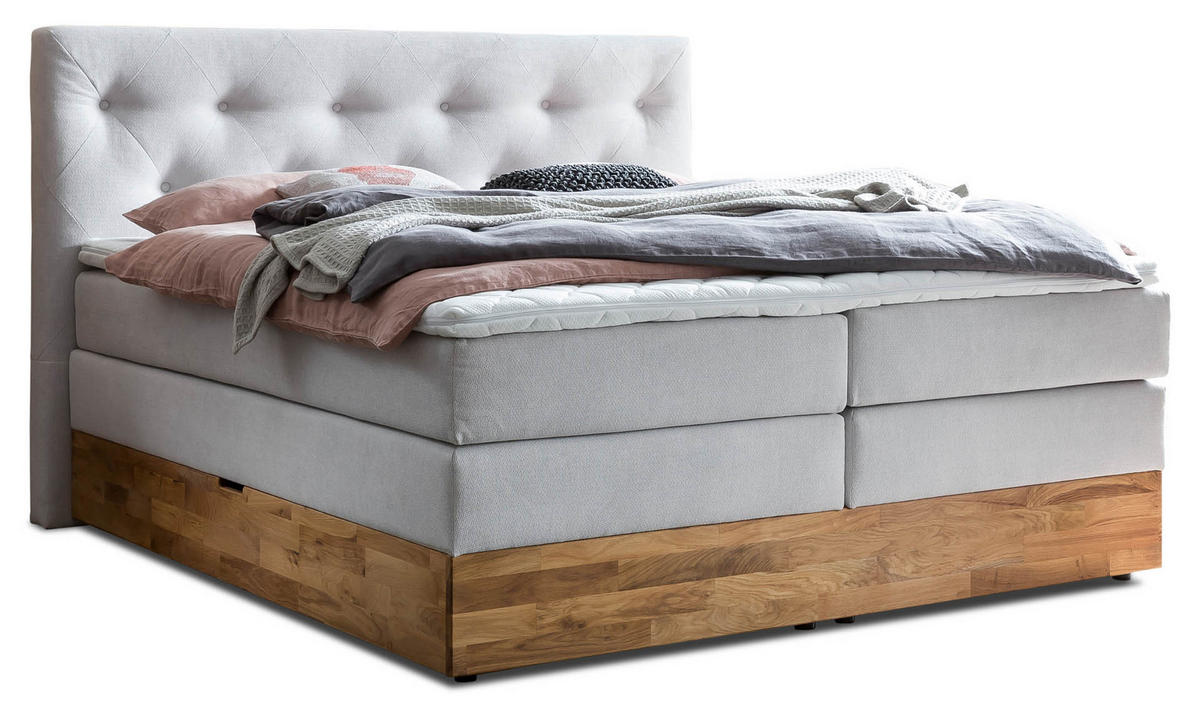 BOXSPRINGBETT MARBO 180x200 Weissgrau H2 und H3 mit Bettkasten 7-Zonen Taschenfederkern Matratze inkl. Visco Topper und Eiche - Weiß, Textil (180/200cm) - BelanotiBelanoti