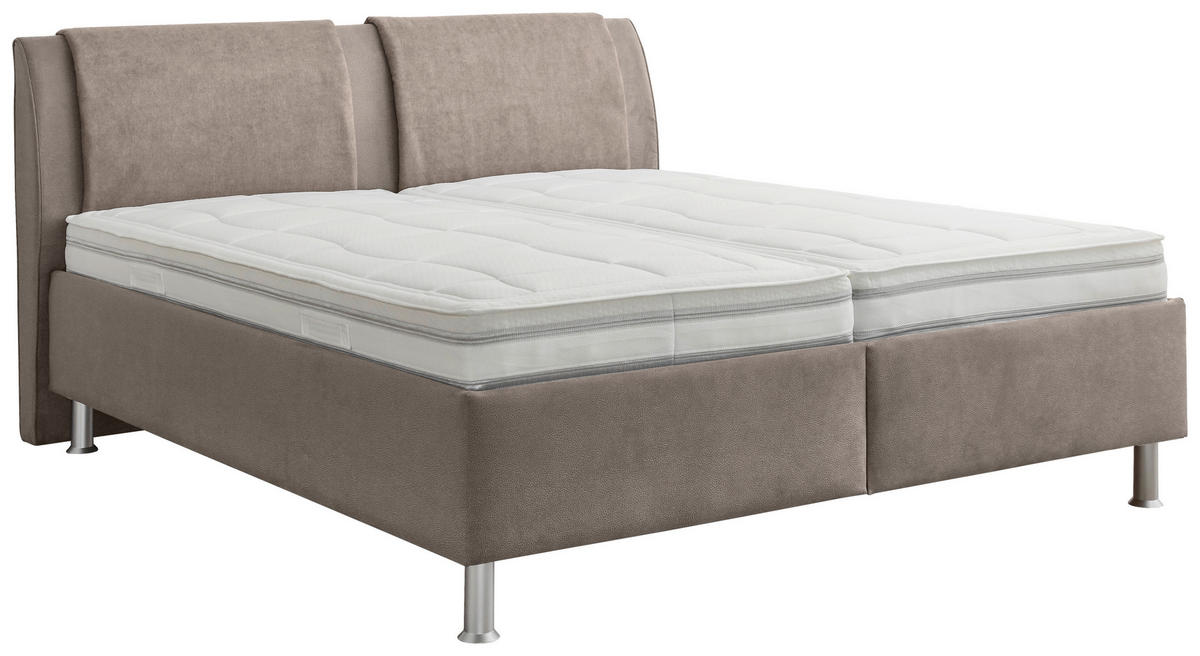 Das Bett in Taupe und Hellgrau wurde mit einem Synthetikfaser-Bezug gefertigt – damit betonen Sie formvollendet Ihre individuelle Ästhetik bei der Schlafzimmer-Einrichtung. Die pflegeleichte