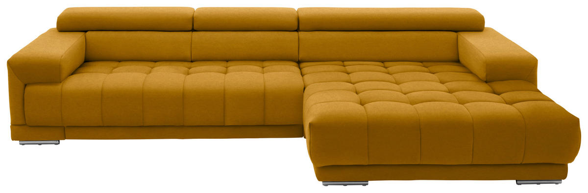 Absolut sehenswert Die ausdrucksstarke Farbgebung des Polstermöbels in Currygelb kreiert eine ansprechende Gestaltung und integriert sich schick in diverse Interior-Konzepte. Stylishe Akzente setzen dazu die Rundrohr-Füße aus Metall in Silberfarben.