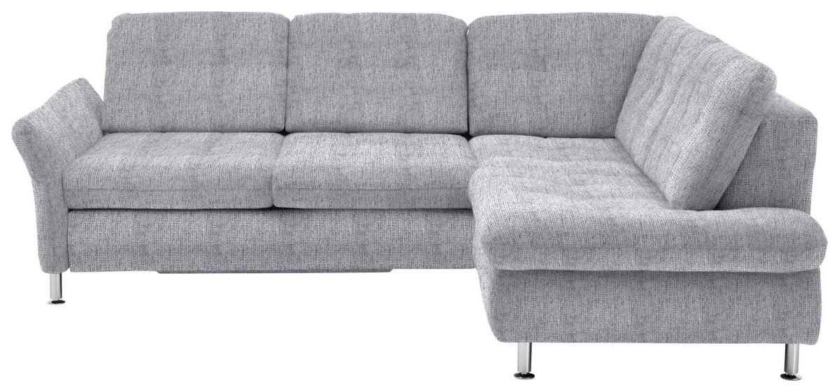 Im Lieferumfang enthalten: Rein in die Komfortzone: Dieses alufarbene Ecksofa mit Webstoff-Bezug entführt Sie auf ein traumhaftes Terrain zum geruhsamen Durchatmen!