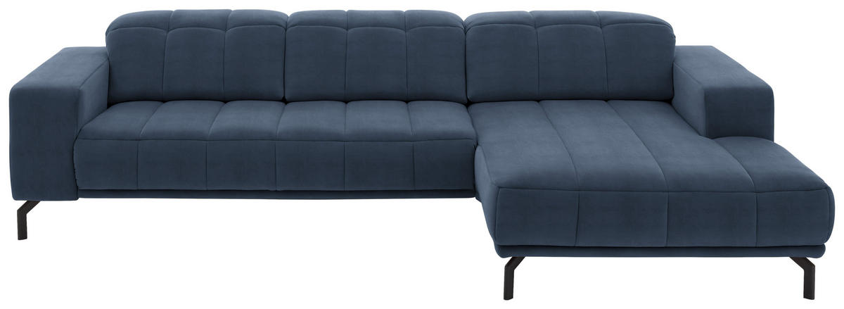 Verwöhnen Sie sich selbst mit diesem blauen Ecksofa mit Velours-Bezug!