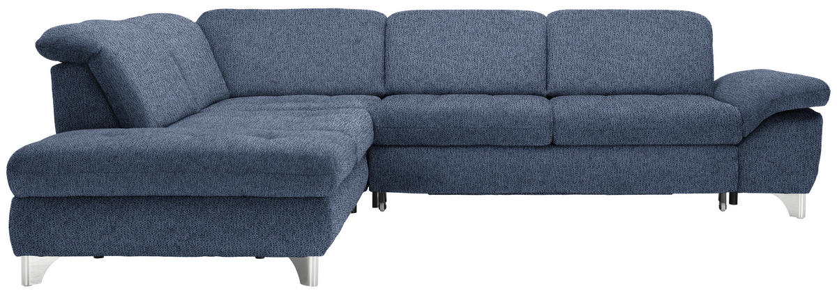 Im Lieferumfang enthalten: Stellen Sie mit diesem blauen Ecksofa mit Webstoff-Bezug die Weichen für Behaglichkeit!