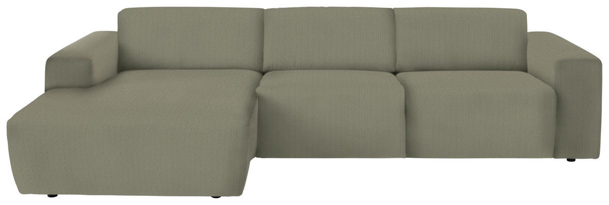 Im Lieferumfang enthalten: Ihr braunes und grünes Ecksofa mit Feincord-Bezug verführt dazu, behaglich die verdiente Me-Time zu genießen!