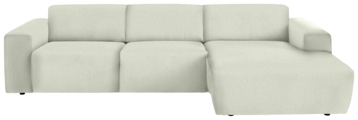 Im Lieferumfang enthalten: Eine Sonderportion Behaglichkeit schenkt Ihnen dieses cremefarbene Ecksofa mit Feincord-Bezug. Greifen Sie zu!
