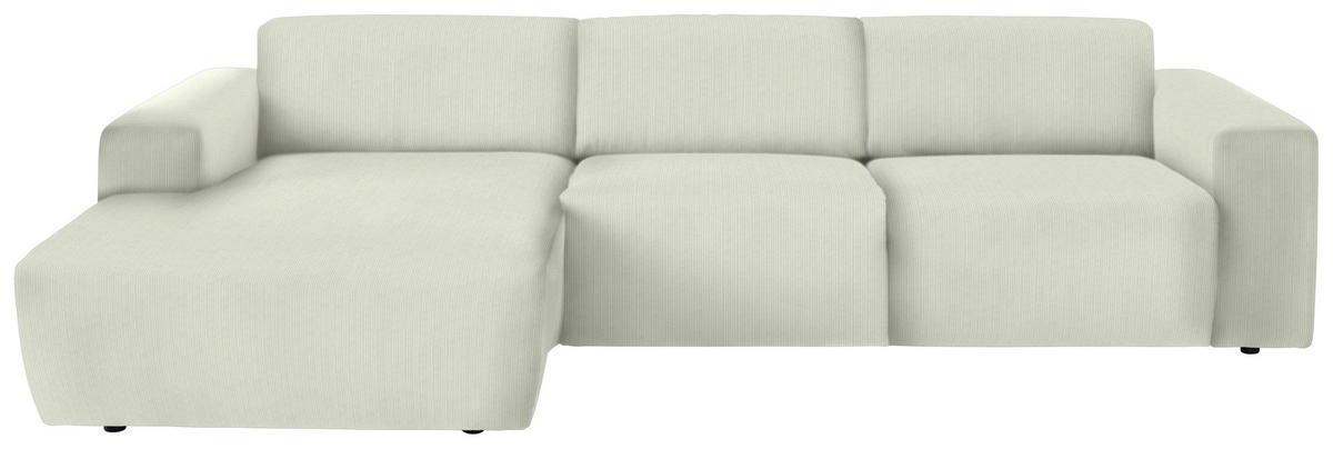 Im Lieferumfang enthalten: Eine Sonderportion Heimeligkeit schenkt Ihnen dieses cremefarbene Ecksofa mit Feincord-Bezug. Greifen Sie zu!