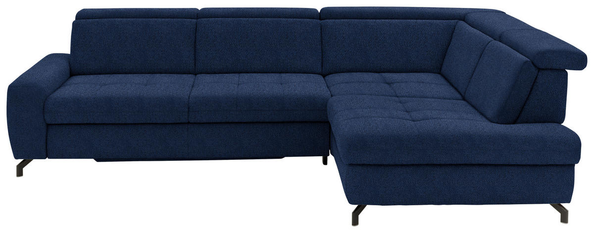 Makelloses Design Die klassische Farbgebung in Dunkelblau verhilft dem Polstermöbel zu einer ästhetischen Optik. Einen festen Stand gewährleisten die Winkelfüße aus mattem Edelstahl in Schwarz, die zugleich das Design adäquat komplettieren.