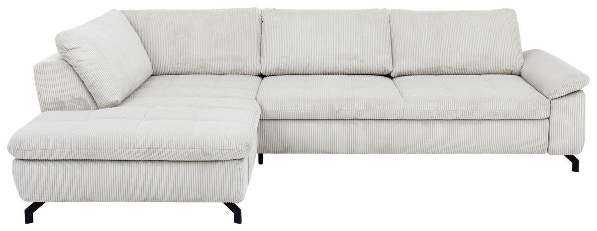 Im Lieferumfang enthalten: Gönnen Sie sich mit diesem ecrufarbenen Ecksofa mit Cord-Velours-Bezug ein famoses Upgrade für Ihr geliebtes Heim!