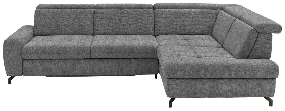 Sehenswerter Hingucker Das subtile Kolorit in Grau verleiht dem Polstermöbel einen harmonischen Look und fügt sich schick in verschiedene Einrichtungstrends ein. Standfest und stylish vervollständigen die Winkelfüße aus mattem Edelstahl in Schwarz das Design.