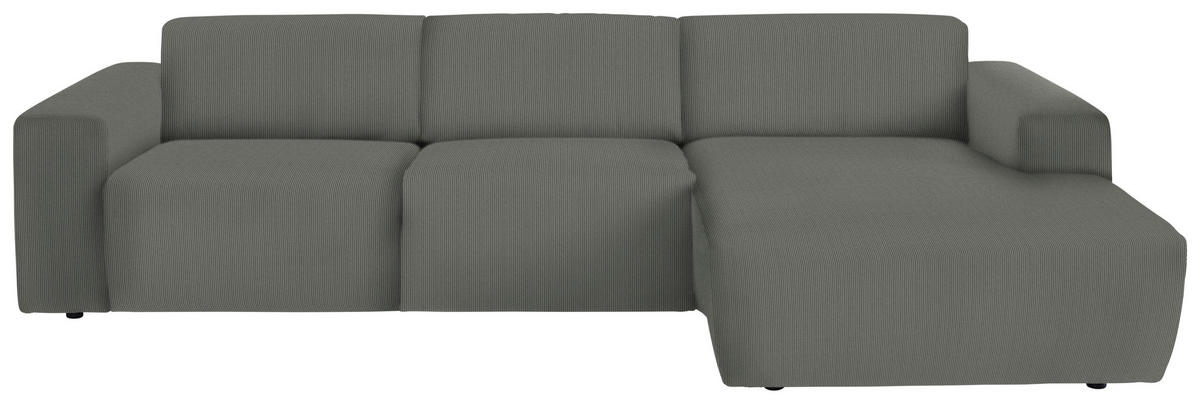 Im Lieferumfang enthalten: Wenn dieses graue Ecksofa mit Feincord-Bezug bei Ihnen einzieht, dreht sich alles um Behaglichkeit!
