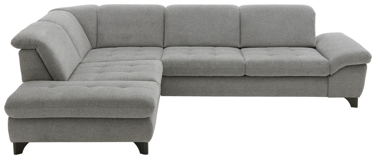 Genießen Sie Ihr Rendezvous mit der wohligen Unbeschwertheit des Seins auf diesem grauen Ecksofa mit Webstoff-Bezug!